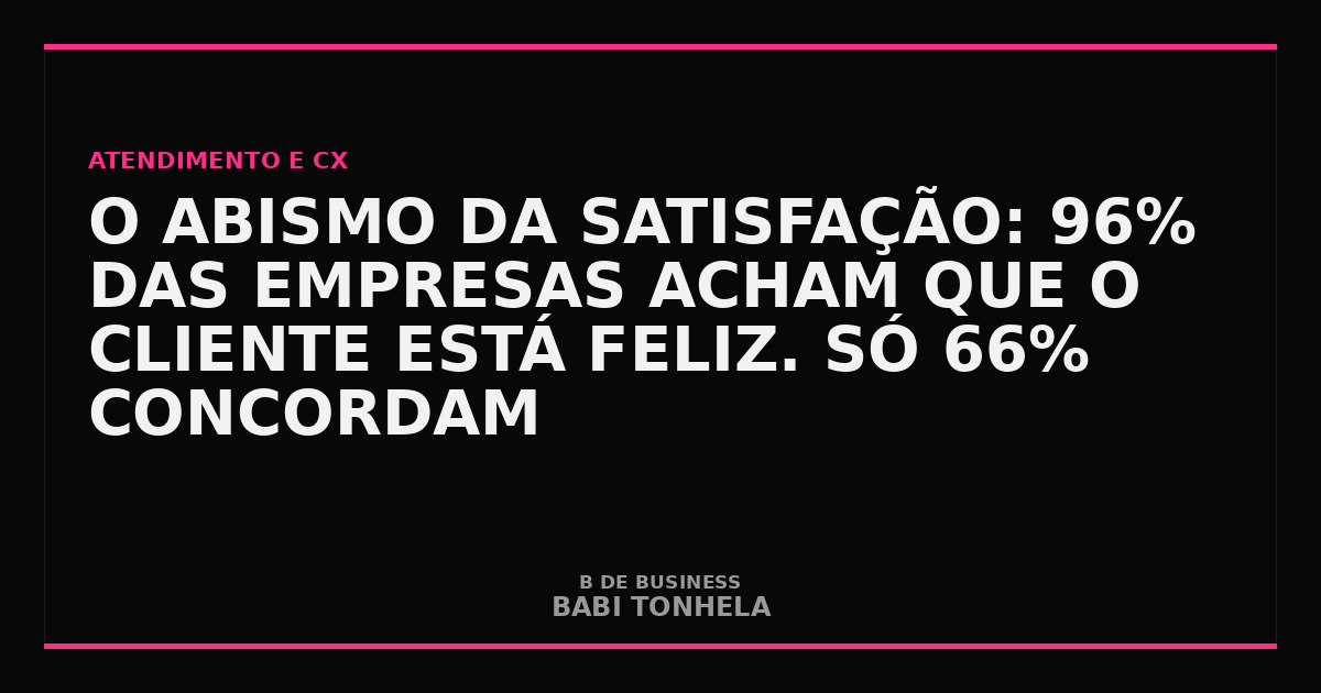 Segundo relatório da Twilio com 4.800 consumidores em 12 países, 96% das empresas brasileiras acreditam que seus clientes estão satisfeitos com a IA conversacional. Mas apenas 66% dos consumidores confirmam essa percepção. São 30 pontos percentuais de abismo — quase um terço dos clientes está insatisfeito sem que a empresa saiba.