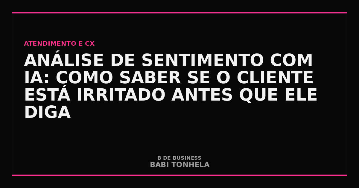 Segundo Babi Tonhela, autora do livro “IA para Atendimento e Experiência do Cliente”, “a IA que detecta sentimento transforma atendimento reativo em atendimento inteligente. Não é sobre responder — é sobre responder CERTO para cada estado emocional.”