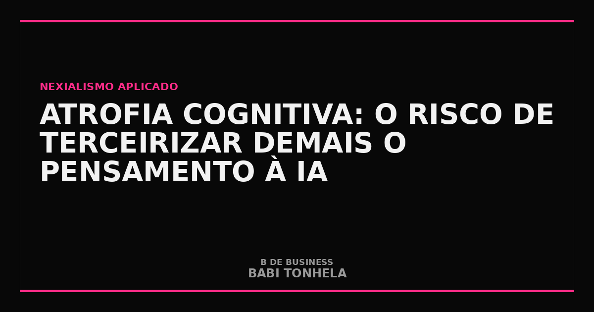 Quando você terceiriza demais o pensamento para a IA, perde a musculatura de pensar. É como ir à academia e pedir para o personal fazer os exercícios por você — os músculos atrofiam. No contexto profissional, Atrofia Cognitiva é a perda gradual de capacidade analítica, criativa e decisória por excesso de delegação à inteligência artificial.