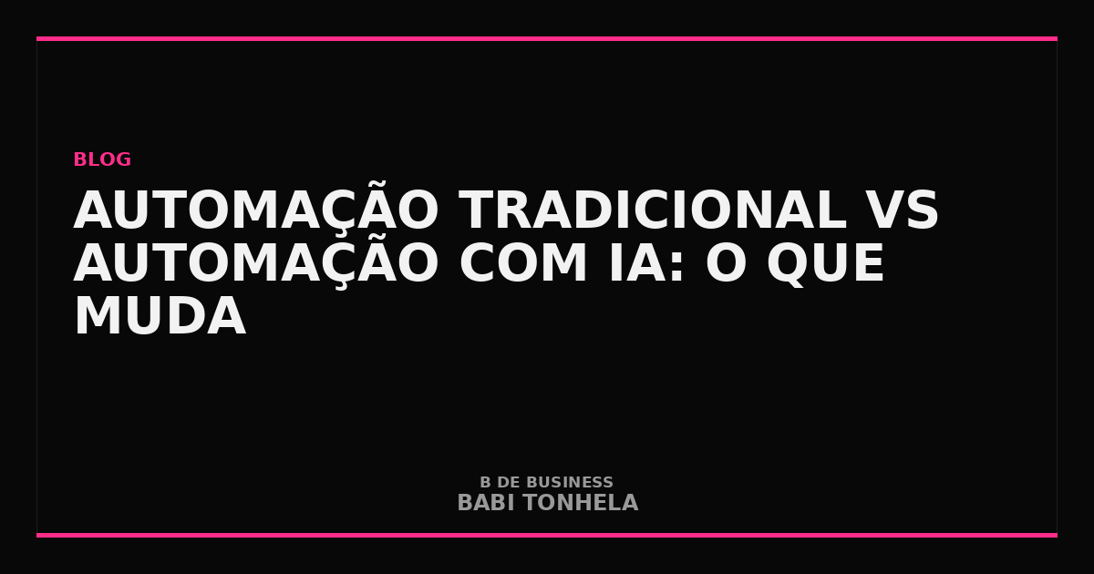 Automação tradicional — também chamada de RPA (Robotic Process Automation) simples ou automação baseada em regras — funciona a partir de lógica condicional: se X acontece, execute Y. Ela não aprende, não adapta e não lida com exceções que não foram programadas.