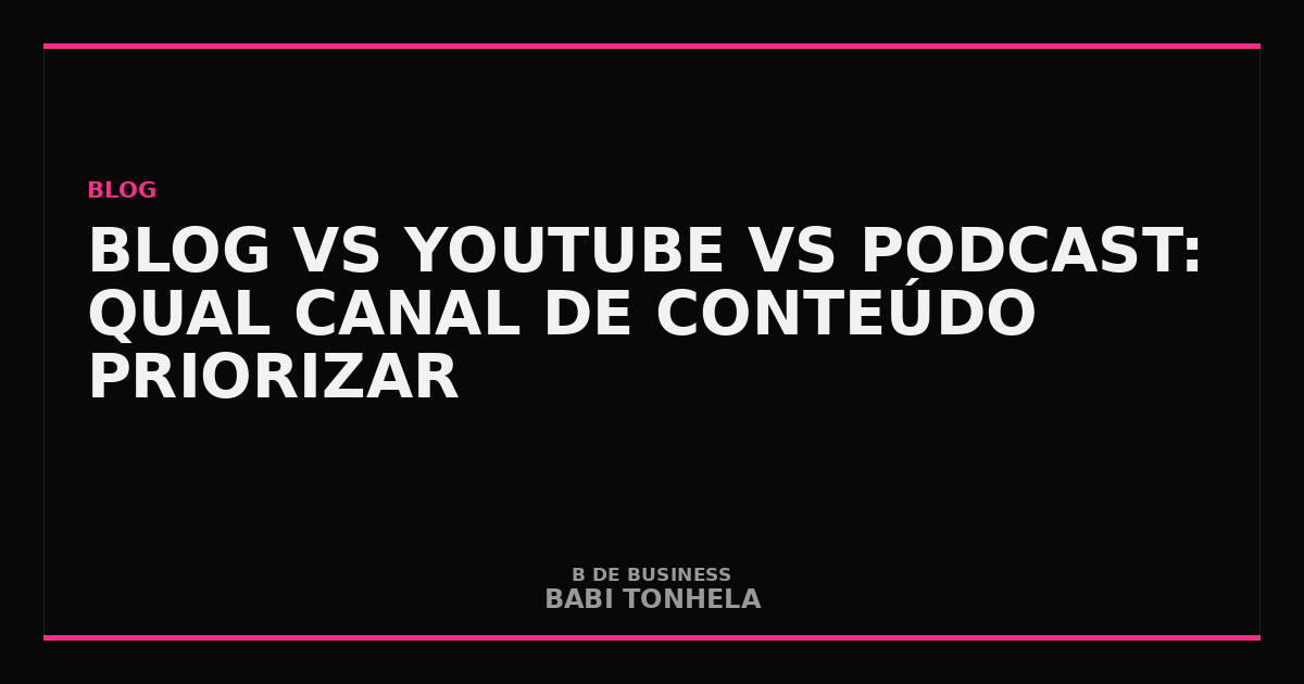 Blog, YouTube ou podcast: a pergunta que paralisa mais gestores de marketing do que deveria. A resposta não é qual canal é melhor — é qual canal é melhor para o seu público, o seu tipo de conteúdo e o seu modelo de negócio. Dispersar esforços nos três sem estratégia é a garantia de não ser excelente em nenhum. Concentrar no canal errado é desperdiçar anos de produção.