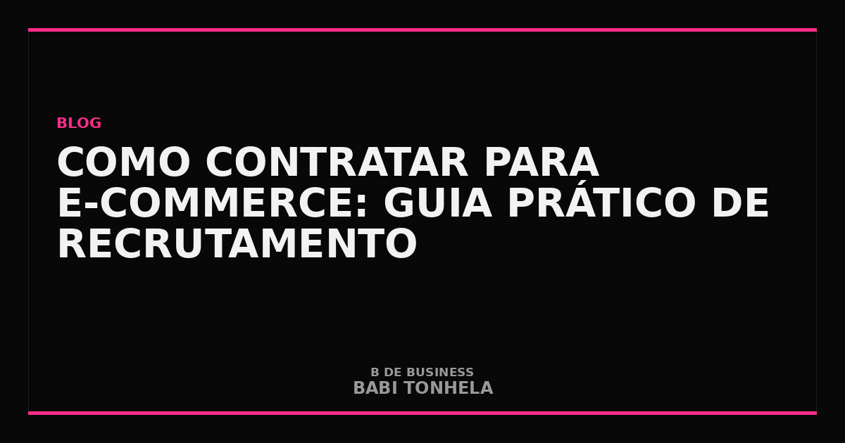 Para comparar os modelos de contratação e seus custos reais (CLT vs PJ vs freelancer), acesse o artigo CLT vs PJ vs freelancer para e-commerce. Para entender o custo total de montar uma equipe completa, veja quanto custa montar uma equipe completa para e-commerce.
