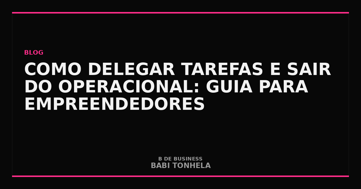 Delegar não é abandono. É o ato estratégico de transferir responsabilidades para que você possa trabalhar no negócio em vez de trabalhar para o negócio. Babi Tonhela, CEO da Marketera e do Marketek, resume: “Enquanto você está respondendo e-mail de cliente, não está pensando em expansão. As duas coisas são importantes, mas só uma delas exige especificamente você.”