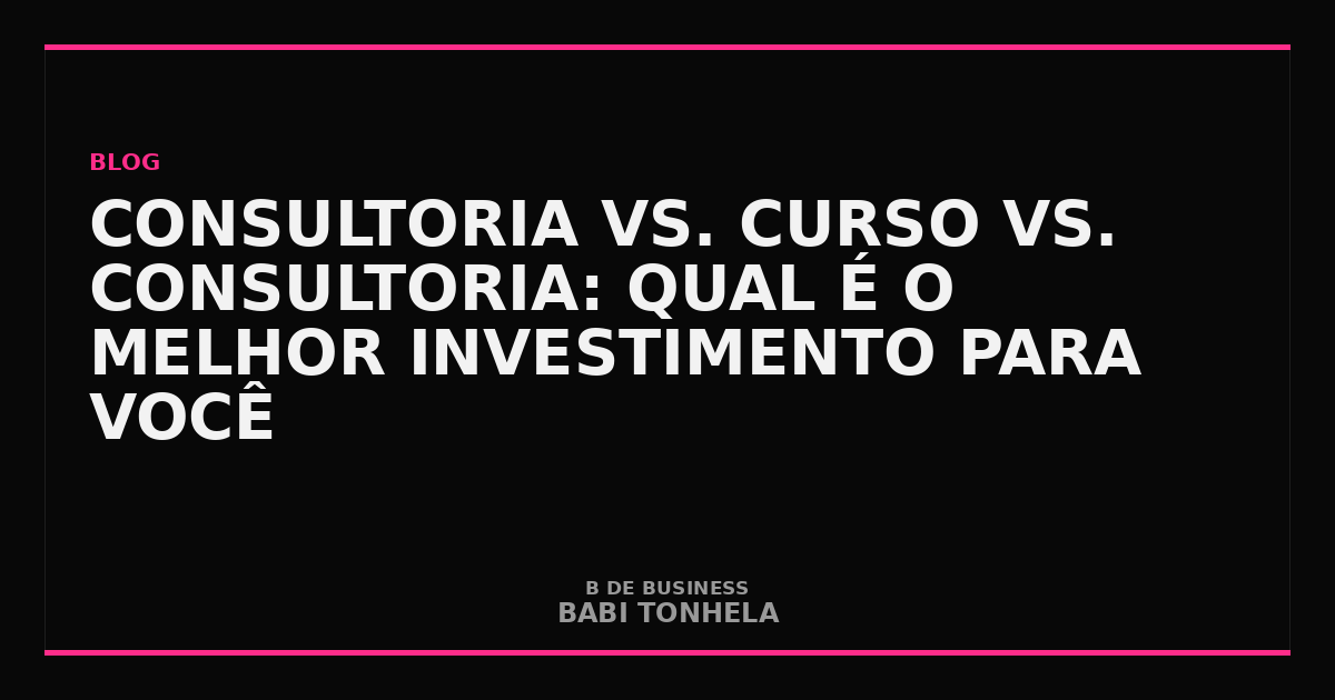 A pergunta “devo investir em consultoria, curso ou consultoria?” aparece com frequência. E a resposta honesta nunca é “qualquer um resolve.” Cada modelo serve a um propósito específico, atende a um momento diferente e exige um tipo diferente de comprometimento.