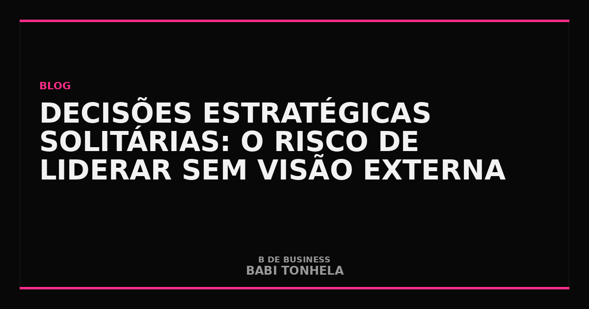 “Decisão estratégica boa não vem de gênio individual. Vem de processo deliberado com perspectivas complementares. Toda vez que vejo um CEO orgulhoso de decidir rápido e sozinho, vejo um risco que ainda não se materializou.”
