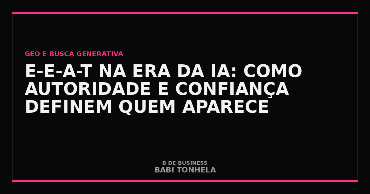 E-E-A-T é a sigla que o Google usa para avaliar a qualidade de conteúdo: Experience (Experiência), Expertise (Expertise), Authoritativeness (Autoridade) e Trustworthiness (Confiabilidade). Criado originalmente para orientar os quality raters humanos do Google, o framework ganhou uma dimensão completamente nova com a ascensão das IAs generativas.