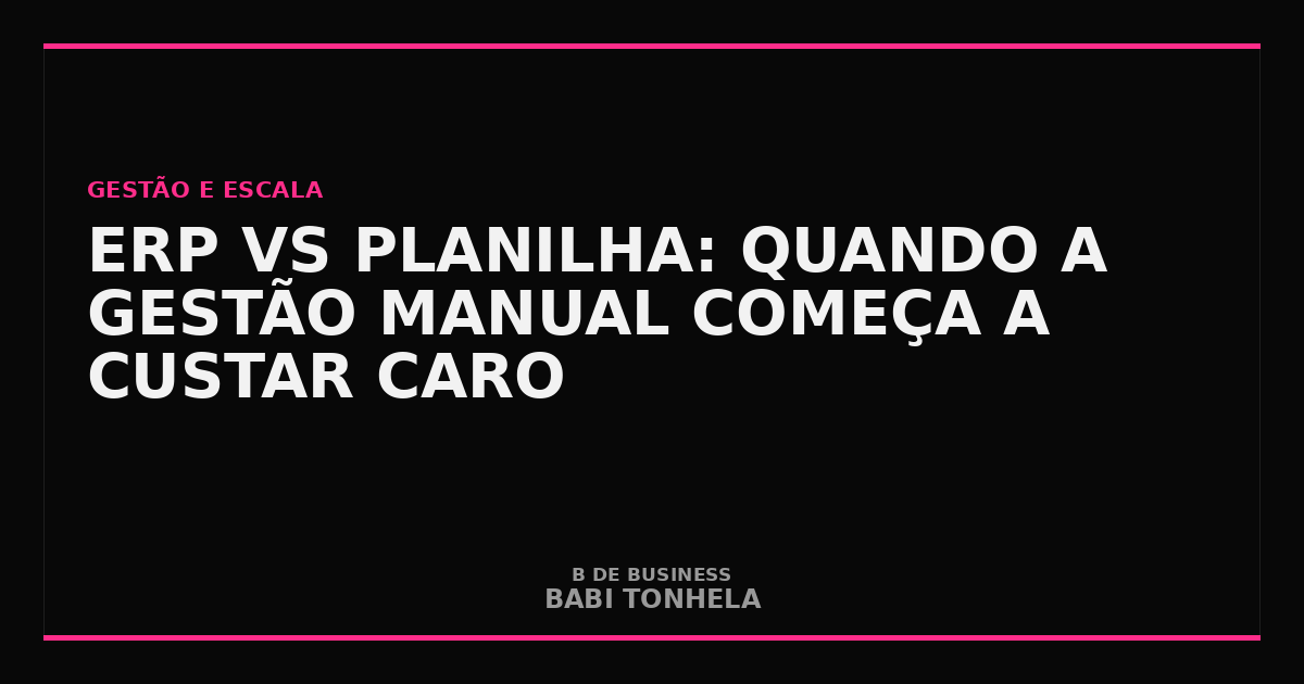 Vou te dar uma análise honesta sobre erp vs planilha e-commerce. Sem patrocínio de nenhuma ferramenta, sem lista genérica de ‘os melhores’. O objetivo aqui é te ajudar a decidir com clareza, com base no estágio real do seu negócio.
