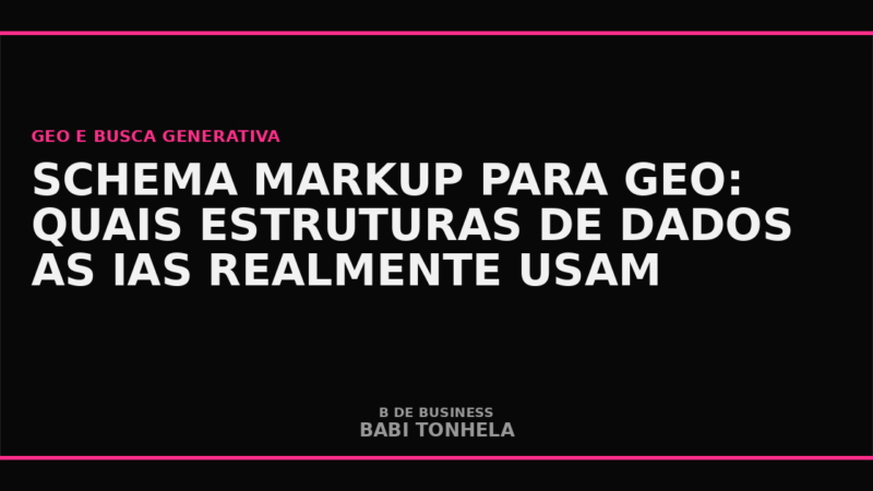Sem dados estruturados, você obriga a IA a inferir o que seu conteúdo é. Schema Article, FAQPage, Product — esses marcadores facilitam a extração de informação e aumentam dramaticamente suas chances de citação.
