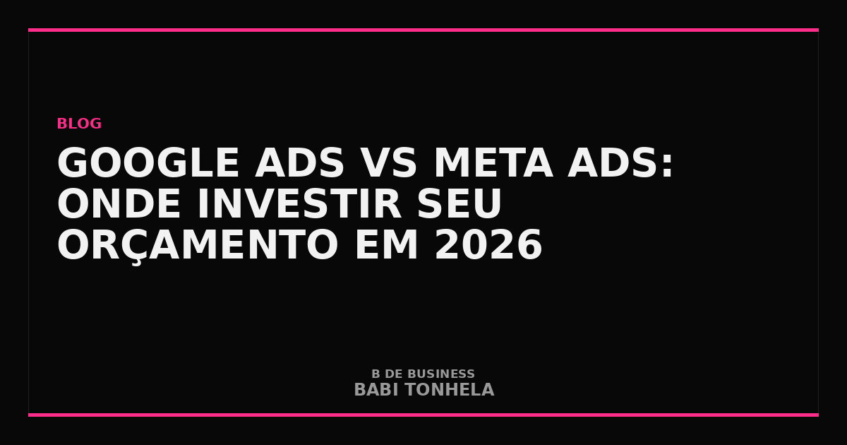 Toda semana alguém me pergunta a mesma coisa: “Babi, devo investir em Google Ads ou Meta Ads?” E toda semana eu dou a mesma resposta: você está fazendo a pergunta errada. A questão não é qual plataforma é melhor — é qual resolve o problema do seu negócio agora. Google Ads captura demanda existente. Meta Ads cria demanda nova. São mecanismos diferentes, com lógicas opostas, e confundi-los é a razão pela qual a maioria das empresas desperdiça orçamento de mídia.