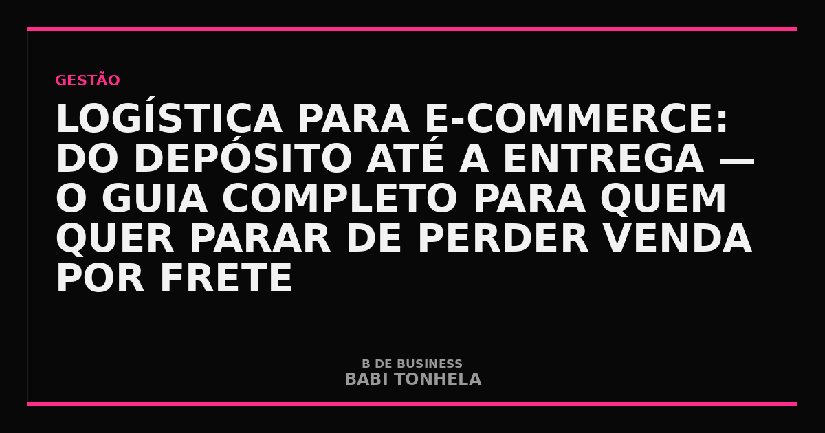 Visão Babi: Logística não é departamento de back-office — é produto. Quando você entrega bem, dentro do prazo e sem ruído, está entregando uma experiência que o cliente associa à sua marca. E experiência é o único diferencial que marketplace não copia facilmente. Trate o frete como feature da sua loja, não como custo a minimizar.
