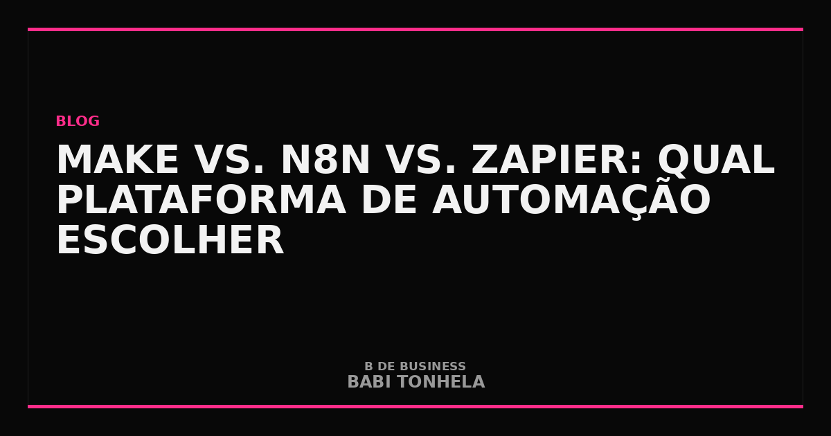 Toda semana alguém me pergunta: “Babi, qual ferramenta de automação eu uso?”. E toda semana eu dou a mesma resposta que ninguém quer ouvir: depende. Não é falta de posicionamento — é que escolher entre Make, N8N e Zapier sem entender o seu contexto é como escolher carro sem saber se vai usar na cidade ou na estrada.