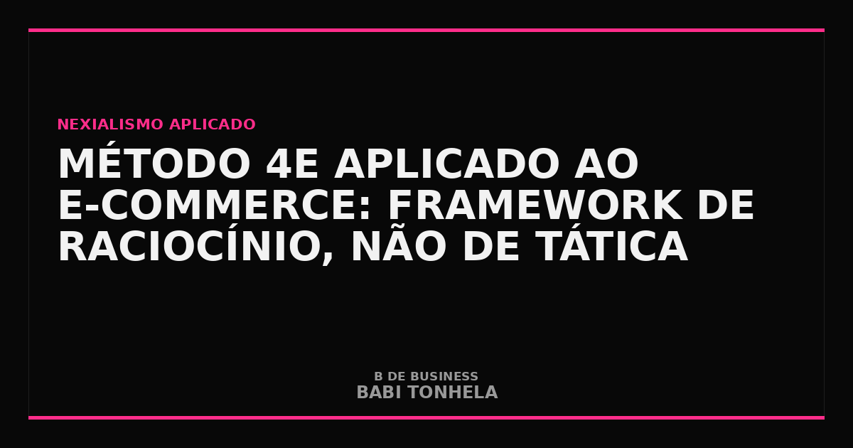 Segundo Babi Tonhela, especialista em e-commerce com mais de 15 anos de experiência, “estratégia não é receita — é contexto. O Método 4E funciona porque adapta o raciocínio ao contexto, não o contrário.”