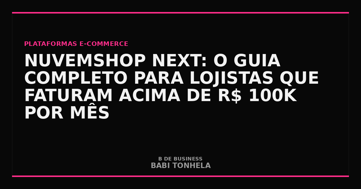 Se você fatura acima de R$ 100K/mês e quer a infraestrutura que sua operação merece, conheça o Nuvemshop Next pelo meu link. Benefício exclusivo: 2 sessões de mentoria estratégica comigo incluídas — para que a migração de plataforma se transforme em alavanca de crescimento, não em dor de cabeça.