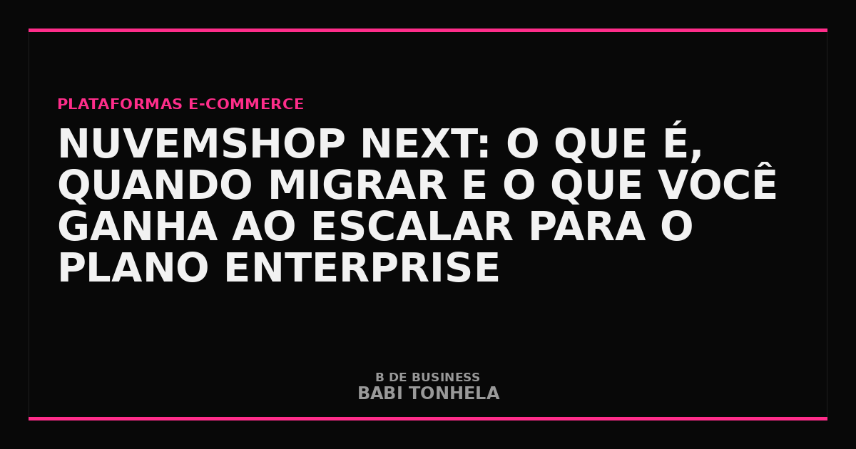 Visão da Babi: Passei anos dentro da Nuvemshop como Diretora de Estratégia. Ajudei a estruturar como a plataforma pensa o atendimento ao segmento enterprise. A Nuvemshop Next não é só um plano mais caro — é um contrato de parceria. Você deixa de ser um cliente de plataforma e passa a ser um parceiro estratégico, com voz ativa para influenciar o roadmap do produto. Para marcas que já têm tração real, isso muda completamente a relação com a tecnologia.