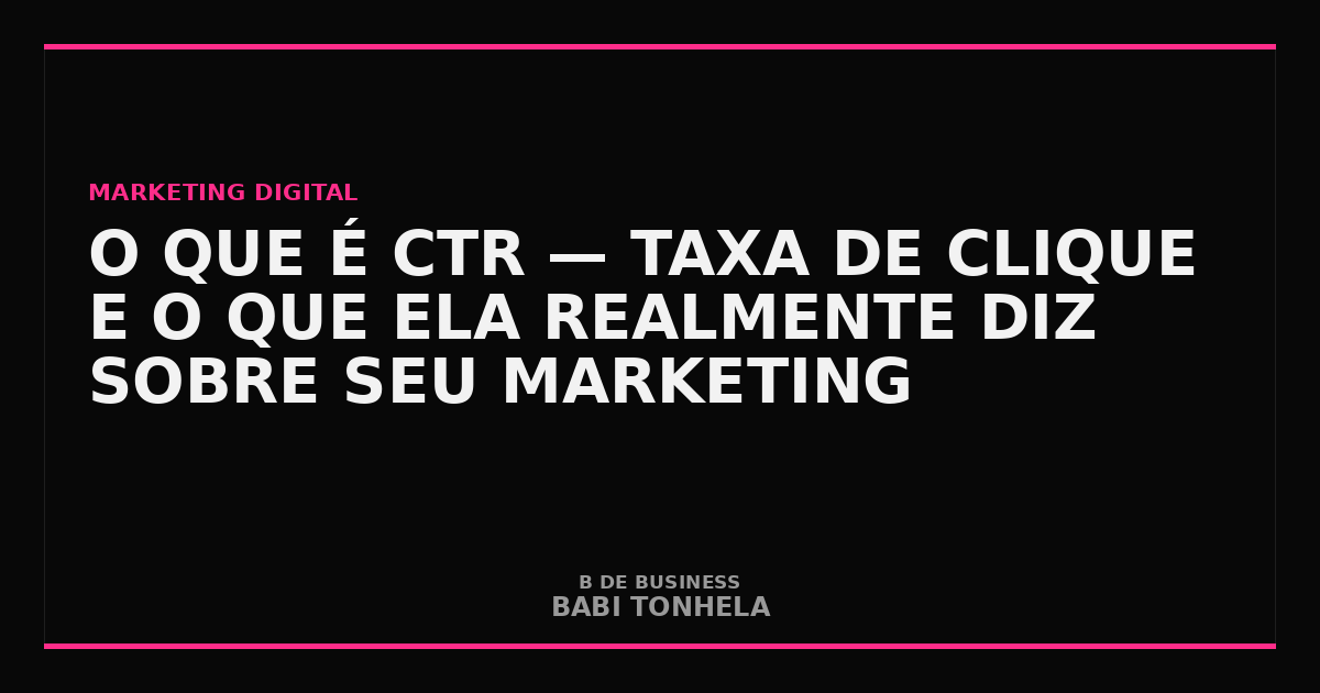 CTR (Click Through Rate) é a taxa de clique — a porcentagem de pessoas que clicam em um link, anúncio ou resultado após vê-lo. É calculado dividindo o número de cliques pelo número de impressões e multiplicando por 100. Um CTR alto indica que seu conteúdo ou anúncio é relevante e atrativo para o público.