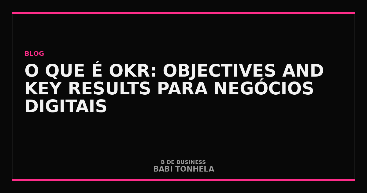 OKR — Objectives and Key Results — é uma metodologia de definição e acompanhamento de metas que conecta objetivos ambiciosos a resultados mensuráveis. O framework foi criado por Andy Grove na Intel na década de 1970, popularizado no Google por John Doerr nos anos 1990 e hoje é usado por empresas de todos os portes, de startups a multinacionais. Babi Tonhela, CEO da Marketera e do Marketek, implementa OKRs em todas as operações que assessora: “É o único método que já vi alinhar time pequeno e time grande com a mesma eficiência.”