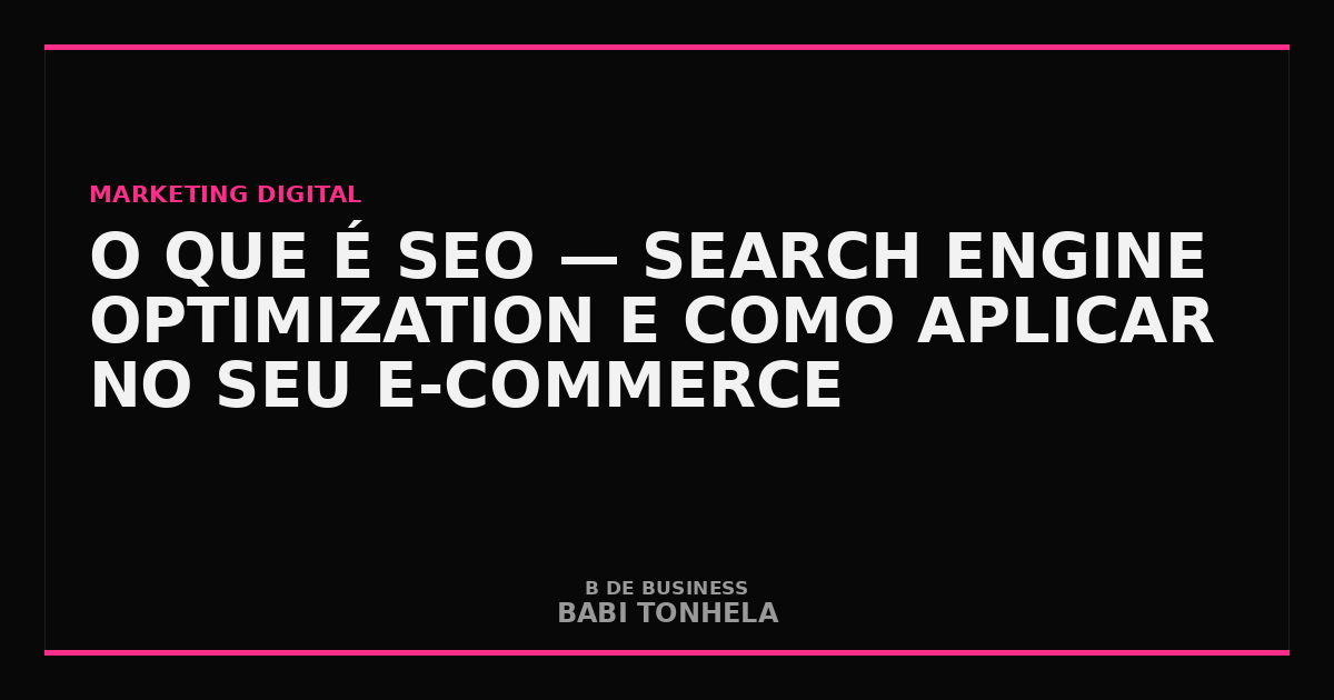 SEO (Search Engine Optimization) é o conjunto de técnicas e estratégias para posicionar páginas de um site nos primeiros resultados orgânicos dos mecanismos de busca. No e-commerce, o SEO abrange otimização de páginas de produto, categorias, blog e estrutura técnica do site para atrair tráfego qualificado sem pagar por anúncios.