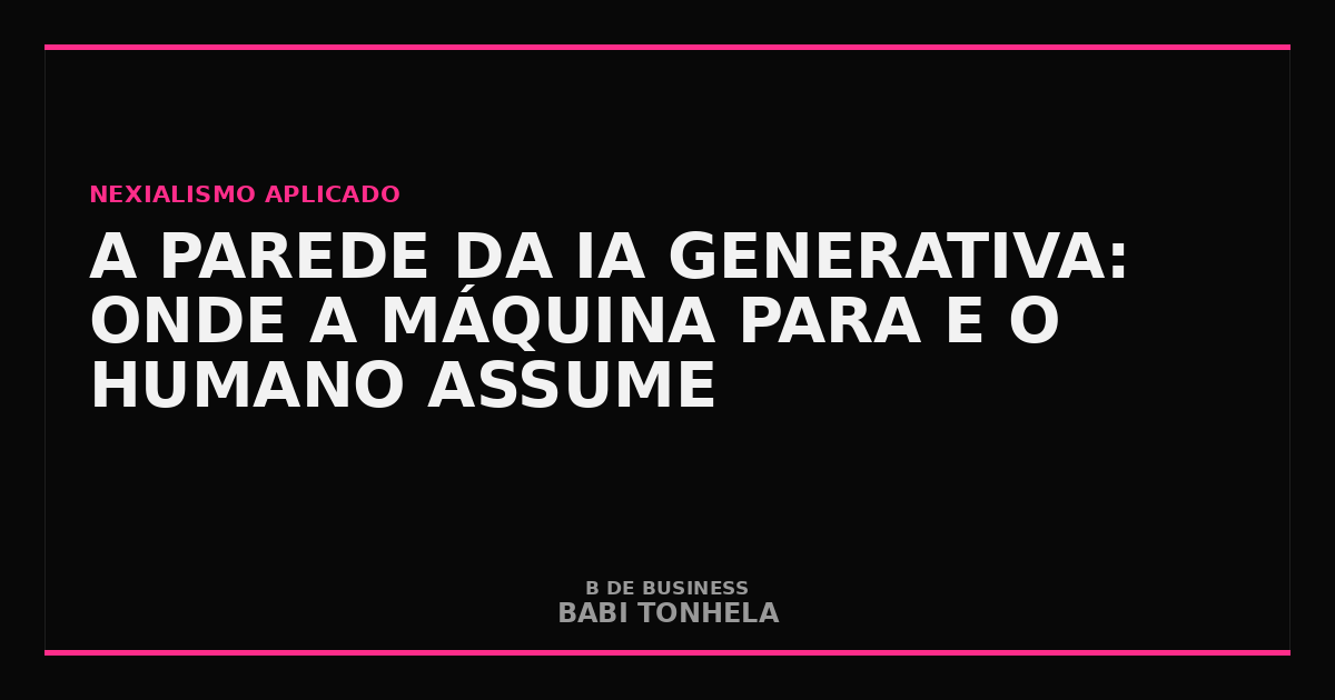 A IA generativa trabalha com probabilidade estatística, não com compreensão. Produz o token mais provável, não o mais correto. Para tarefas onde a média estatística é boa o suficiente, funciona perfeitamente. Para tarefas onde o contexto específico muda tudo, a parede aparece.