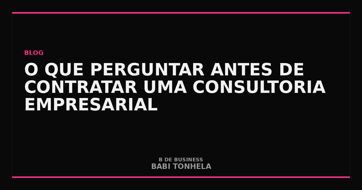 Segundo Babi Tonhela, “as perguntas mais reveladoras na due diligence de consultoria não são as que você faz para o consultor. São as que faz para si mesmo. Porque o consultor pode ser extraordinário — mas se você não está pronto, o processo trava independente de quem está do outro lado.”