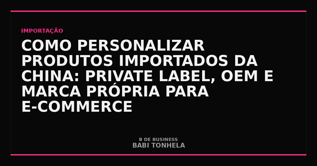 Visão da Babi: A maioria dos empreendedores que começa a importar acha que precisa ir direto ao OEM para “ter algo diferente”. Não precisa. Comece pelo private label: coloque sua marca num produto já validado, aprenda a vender essa marca, construa base de clientes. Quando você tiver dados de demanda, aí faz sentido investir em OEM. Pular essa etapa queima capital em produto caro antes de você saber se o mercado quer o que você está vendendo.