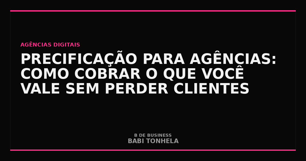 Segundo Babi Tonhela, “precificação é a decisão estratégica mais negligenciada em agências digitais. A maioria define preço com base em medo — medo de perder o cliente, medo de ser caro, medo de não fechar. E esse medo custa caro: margem ruim, equipe sobrecarregada e clientes que não valorizam o trabalho.”