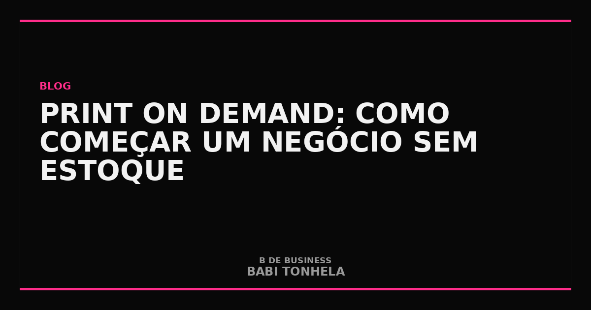 “Segundo Babi Tonhela, CEO da Marketera e do Marketek, o print on demand é o modelo mais democrático de e-commerce — qualquer pessoa com criatividade e disciplina de marketing pode começar. Mas democrático não significa automático. O negócio só cresce se o design tiver identidade, o nicho tiver demanda e a conta fechar com margem real.”
