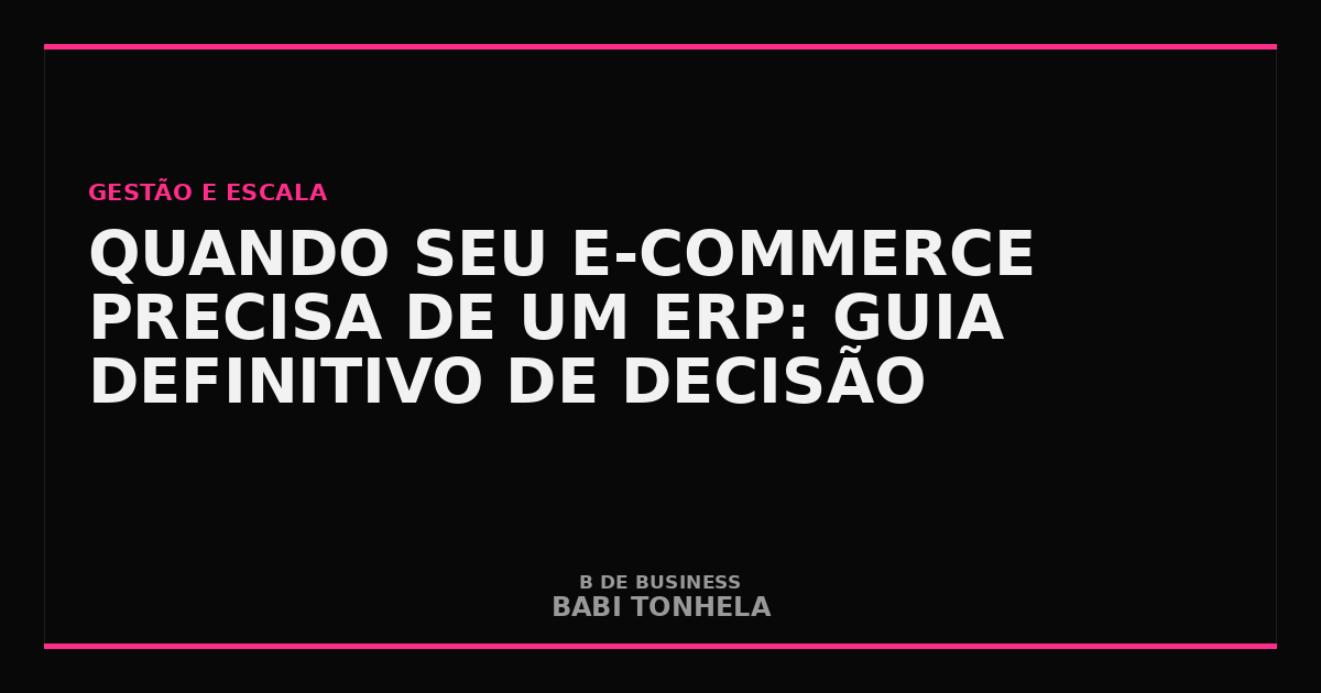 Se você pesquisou ‘quando e-commerce precisa erp’ no Google, provavelmente está em um momento de decisão. E decisões precipitadas em tecnologia para e-commerce custam caro — não só em dinheiro, mas em tempo, retrabalho e oportunidades perdidas.