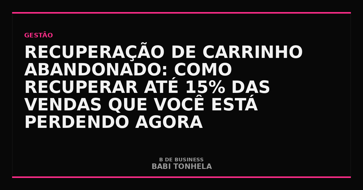Visão da Babi: A maioria dos lojistas vai direto para a recuperação por e-mail sem antes olhar para o checkout. Se a sua taxa de abandono está acima de 75%, o primeiro passo é uma auditoria do fluxo de compra — não uma campanha de e-mail. Recuperação de carrinho complementa um bom checkout; ela não substitui.