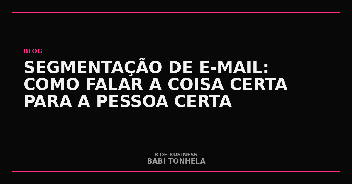 Sem segmentação, e-mail marketing é megafone. Com segmentação, é conversa. E conversas vendem — megafones irritam.