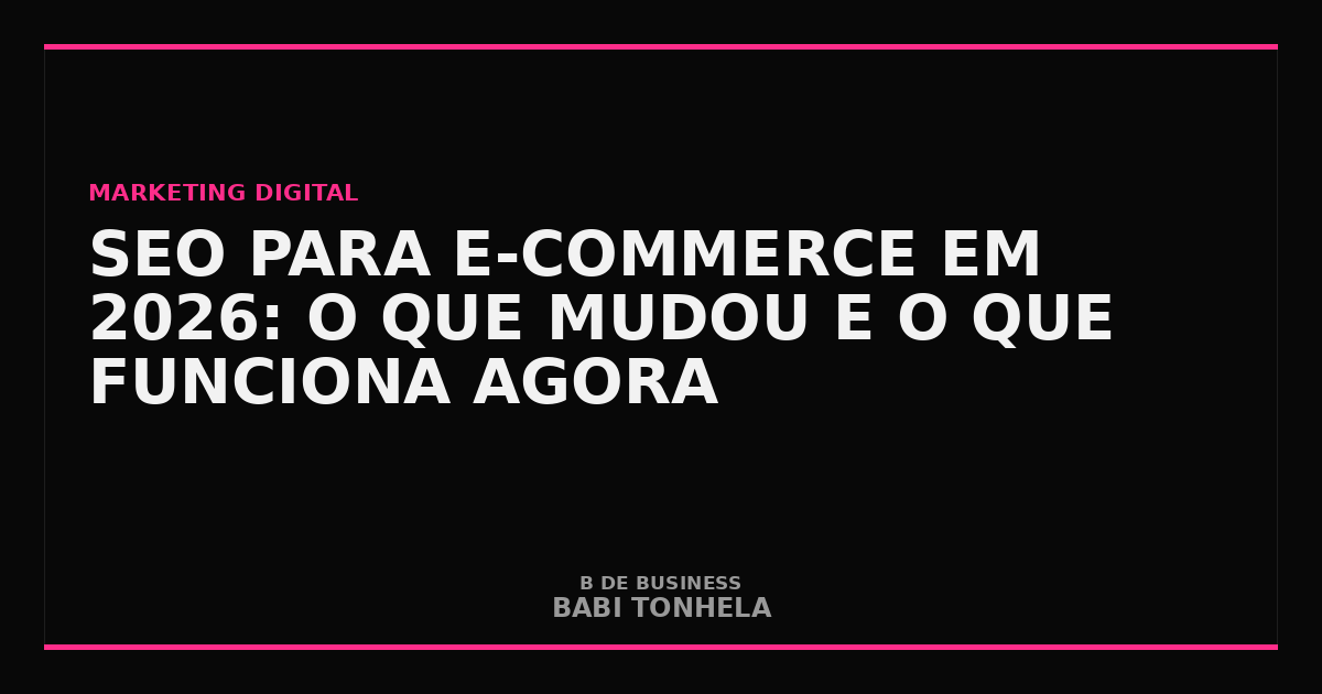 SEO para e-commerce em 2026 não é o mesmo de 2023. IA generativa mudou como o consumidor busca. Google mudou como classifica. E se você está fazendo SEO do mesmo jeito de três anos atrás, está perdendo posições sem perceber.