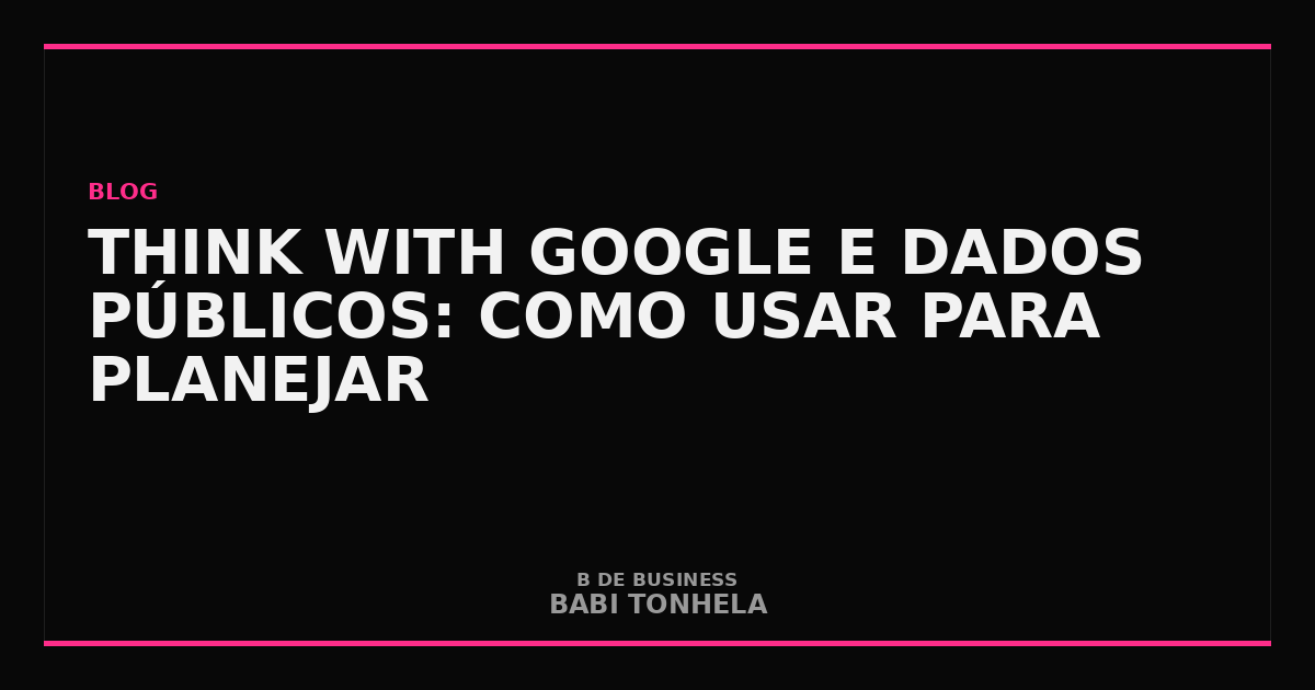 Think with Google é a plataforma de insights do Google. Publica relatórios, estudos de caso e dados sobre comportamento do consumidor, tendências de busca e transformação digital. Especificamente para o Brasil, produz conteúdo sobre o consumidor brasileiro que é, em muitos casos, mais atualizado que pesquisas de mercado pagas.