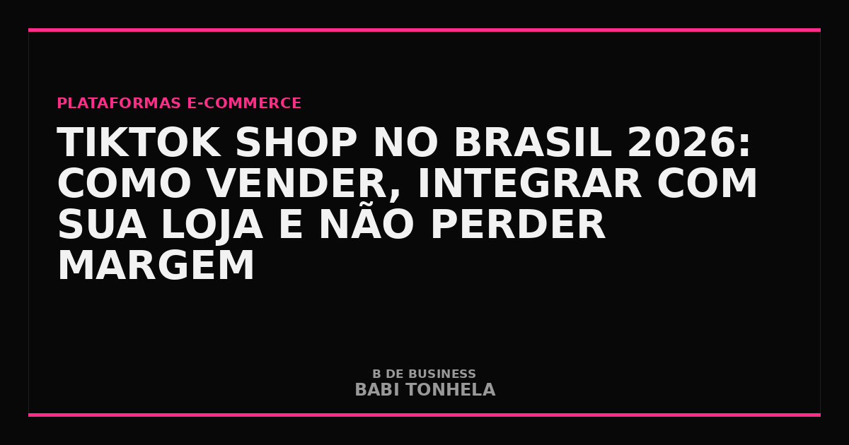 O TikTok Shop Brasil deixou de ser promessa e virou canal de vendas real. Em 2026, a plataforma já opera com checkout nativo, catálogo de produtos, comissão por venda e um modelo de social commerce TikTok que mistura entretenimento com compra em tempo real. Se você tem um e-commerce e ainda não avaliou se vale entrar no TikTok Shop — ou já entrou sem estratégia —, este guia vai te mostrar como funciona, quanto custa, como configurar e, principalmente, como integrar tudo com sua loja própria para não perder controle sobre dados, margem e operação.