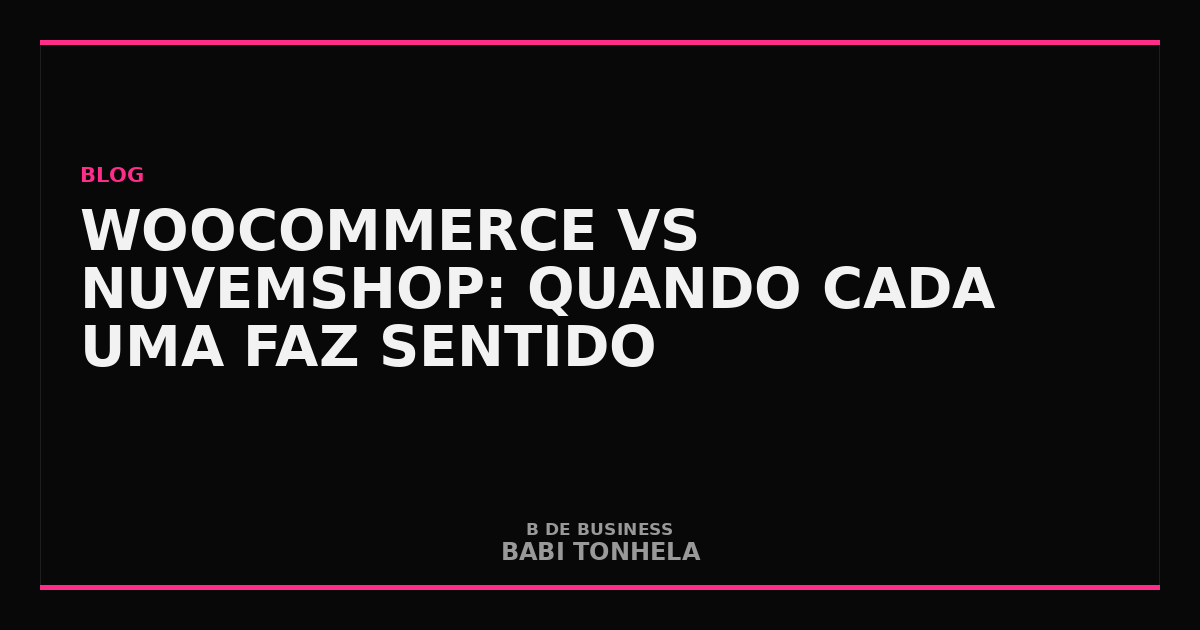 WooCommerce e Nuvemshop representam duas filosofias opostas de plataforma de e-commerce: uma é open source, personalizável ao extremo mas exige gestão técnica; a outra é SaaS, gerenciada pela empresa e muito mais simples de operar. A decisão entre elas não é técnica — é estratégica. Babi Tonhela, CEO da Marketera e do Marketek, resume: “WooCommerce é para quem tem equipe técnica ou dinheiro para contratar. Nuvemshop é para quem quer vender, não gerenciar servidor.”